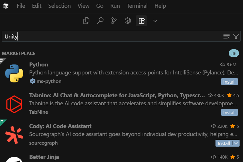 OpenVSX에는, Unity Extension이 존재하지 않는다.