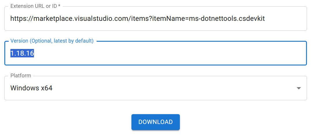 혹은 동일한 개발자가 개발한 크롬 확장 플러그인 VSIX Downloader 를 이용해도 되지만,