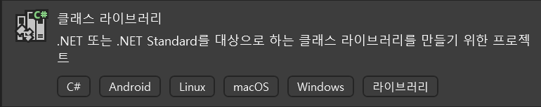 "클래스 라이브러리" 템플릿이 성공적으로 생성되었습니다.